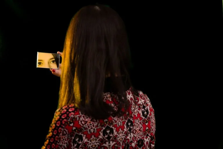 Some of the artwork relating to ‘You & Me, We Are The Same’ includes mirrors and mirror images. One such inclusion is an image of Roxanne de Bastion side by side with an image of her father Richard, their look bearing a striking resemblance. The cover of the lyric booklet imitates a fractured mirror, where shards also contain both images of Roxanne and Richard. Her father was a musician too, who can be heard singing with Roxanne on her Patreon page, and playing piano on the album version of ‘Train Tracks’.