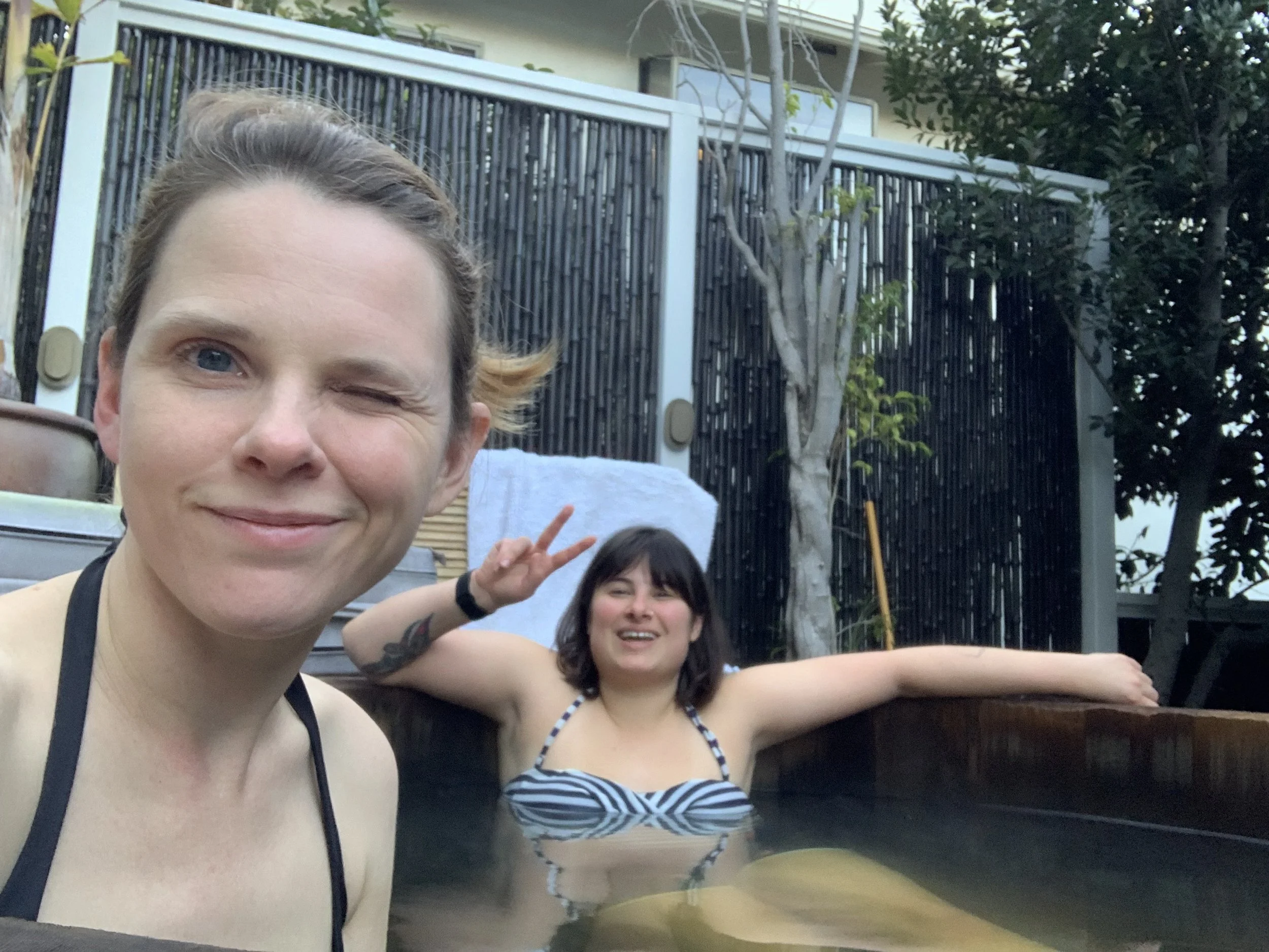 Cassandra Jenkins and Stephanie Marziano in the aforementioned hot tub, late February 2023. Image courtesy of Stephanie Marziano, used with kind permission from Cassandra Jenkins.