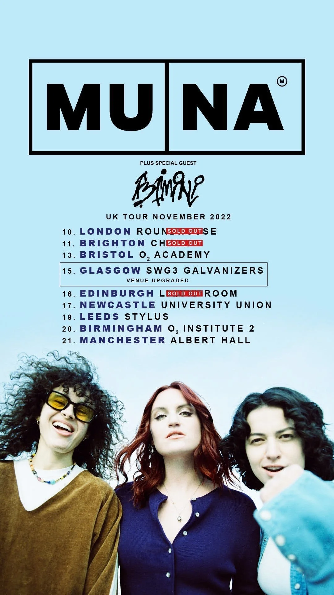 To purchase tickets for the upcoming UK tour of Bimini supporting MUNA, visit their official website.