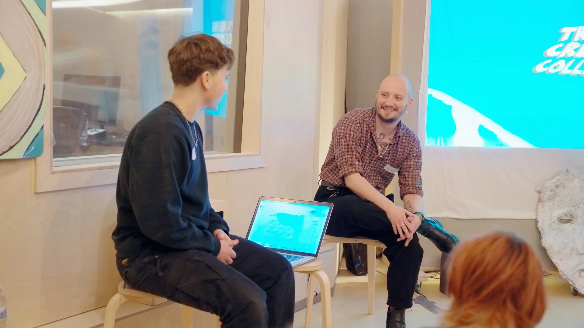Max Blue Churchill in conversation with Tom Abdulhadi-Turner. Image Credit: Colleen Lee and Nelly Rodrigues.